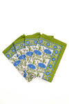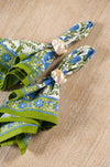 The araminta print is a pattern of bold blue poppies set against a calming blue. Expertly block-printed by an eighth generation family of artisans in Jaipur, the artisans are stewards of a craft that has been passed down to them generation after generation. From the master block makers who carve the blocks in a village to the hands that print the cloth, there are many hands that go into making each piece.
