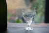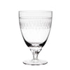 Each glass has been hand-blown and hand-engraved, with a short twisted stem.