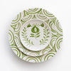 Delight your guests with these charming hand-painted ceramic Crest Green Appetizer Plates.