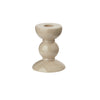 This small cappuccino beige lacquered bobbin shaped candlestick is made from sustainably sourced rubber wood, finished with 8 coats of high gloss lacquer hand polished between each coat. Suitable for standard sized dinner candles.